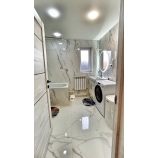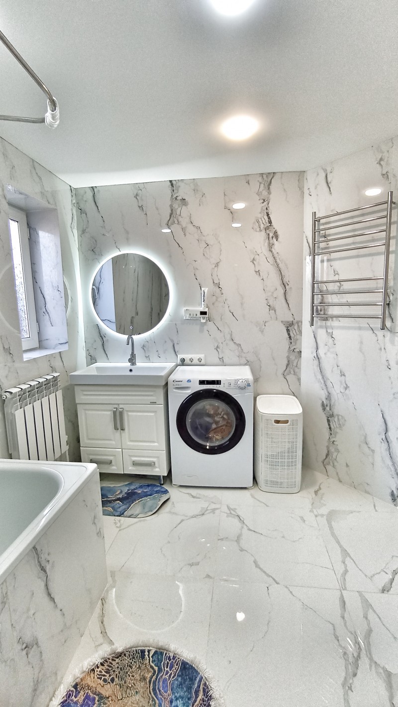 · Остаётся зеркало, умывальник с тумбой и водонагреватель.